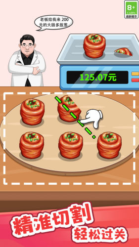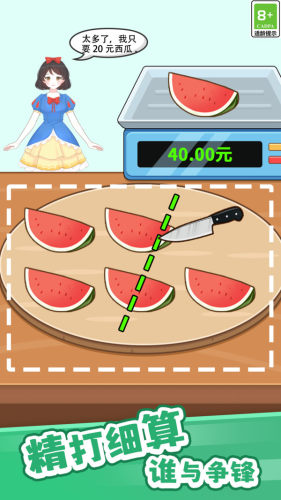 趣味画线切水果,称量模拟经营休闲游戏。如果你是一个美食爱好者,如果你也梦想经营一家食品店,如果你是一名非常擅长与客户沟通的销售员;那么这个游戏将是你的最爱。通过切割来完成顾客要求的重量卖货给他们。