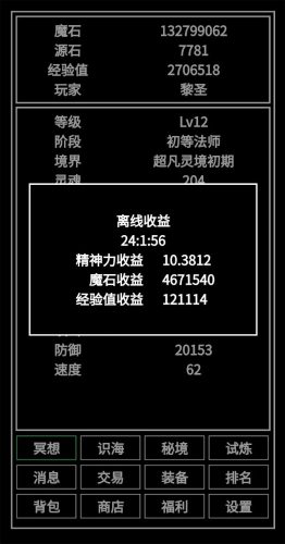 福利玩法:分礼包,宝阁,推广三个界面。礼包可领取资源,宝阁可消耗魔石抽物品,推广是要求新玩家并且新玩家达到十级可获得百万魔石。