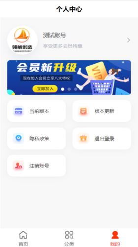 2、我的:我的包含版本更新,当前版本,退出登录和隐私政策等