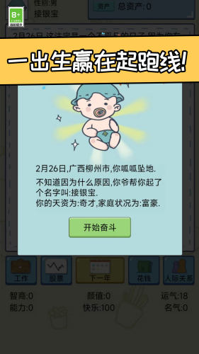 玩家将在这里重启人生,选择出身身世家庭,学习上学,提高智力魅力等属性,