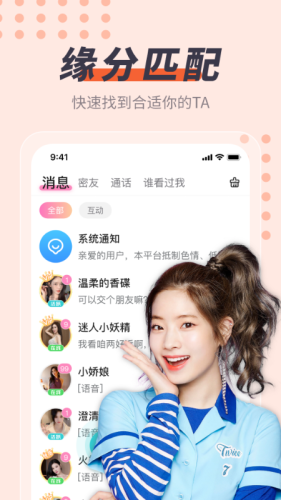 在这里你可以找到各式各样有缘人陪你亲密互动、语音聊天,还可以快速匹配TA视频互动,