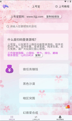 上号宝官网下载安装推荐给大家!上号宝app是一款扫码登录器,让玩家不上微信也可以轻松登录游戏,支持的游戏种类多,只需要扫码即可上号,该平台还提供做任务赚钱板块,欢迎前来下载!
