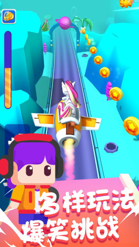 独角兽冒险以独角兽和小马为主角,玩家需要帮助他们在美丽的小路上奔跑、躲避障碍物,收集硬币,解锁新卡。游戏场景丰富多彩,包括火车、公共汽车、滚石、滚冰等不同的障碍物,还有气垫板和飞机供玩家使用。