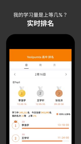 YPT-Yeolpumta安卓版下载,与好友一起学习,制定个人目标,科学规划日程,按时完成学习计划,智能统计学习情况,查看个人学习排名,与网友一起学习,共同进步。
