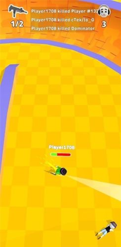 轮滑乱斗场是一款竞技射击类手游。游戏采用上帝视角,玩家操作小人在轮滑场内滑行,躲开敌人的设计并伺机给敌人来上一枪。游戏整体风格欢快,搭配上混乱的竞技射击玩法,给人带来十分有趣的游戏体验,快来尝试一下吧。