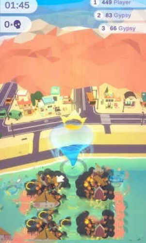 暴风大作战是一款有着清新卡通风格的大乱斗休闲手游,这款游戏的玩法非常简单,需要玩家用手指拖动龙卷风去摧毁一切可以摧毁的东西来让自己变得更强大,然后再去消灭你的对手。