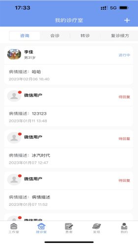 根据医生、专家业务领域量身打造定制化专属工作室,如全科医生、中医专家、心理专家等工作室,开展医疗咨询与诊疗业务,用户建立个人健康档案;组建医生团队,成员通过扫描医生二维码关注医生并加入医生团队;医生用户间可建群,医生、专家间也可建群;专家提供直播、讲座、健康课堂、发布文章、在线咨询、出院关怀等服务。