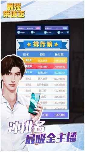 最强带货王这个游戏里,你将扮演一个直播带货的主播,通过不断带货赚取现金红包,经营自己的直播间,成为最强的带货王。不同的主播类型将会带来不同的游戏体验,你可以成为美食博主、时尚博主、化妆品博主等,还可以邀请其他主播合作,一同打造一个更大的直播帝国。