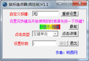 安可鼠标连点器支持左右键双向点击,可设定点击的次数和速度,并且还能够隐藏窗口等功能,最重要的是它是一款完全免费的软件。