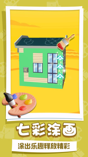 1、变身勤劳粉刷匠,房屋涂色我在行。滑动手指移动彩色方块,将雪白的墙面涂上不一样的颜色。上下左右随性涂鸦自由创作,打造出独一无二的炫彩小屋,你就是最厉害的粉刷大师!