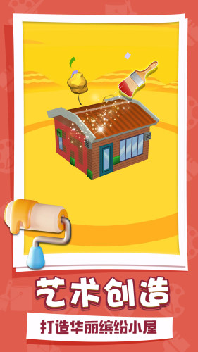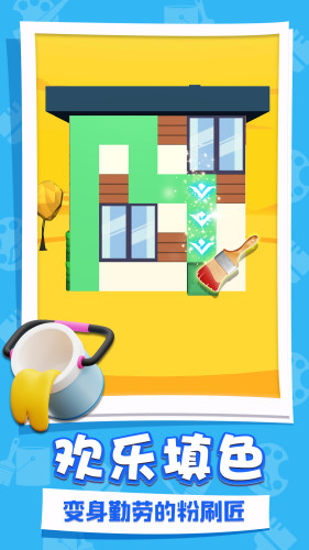 2、刷完屋顶又刷墙,刷子飞舞忙~风格各异的小房子,高高低低错落有致,哪一栋是你最心爱的小屋?单指一滑即可轻松上色,手残星人也能轻松完成。看着雪白的墙面一步一步变成缤纷的七彩小屋,收获满满的成就感!简单的操作带给你无限的乐趣,放松你一天紧绷的神经,缓解大脑疲劳。压力大的时候,想静静?快来试试这款大朋友、小朋友都适合的填色游戏!
