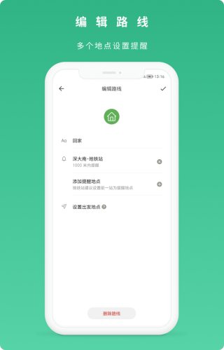 在出发地点打开应用,直接启动路线提醒,方便快捷。