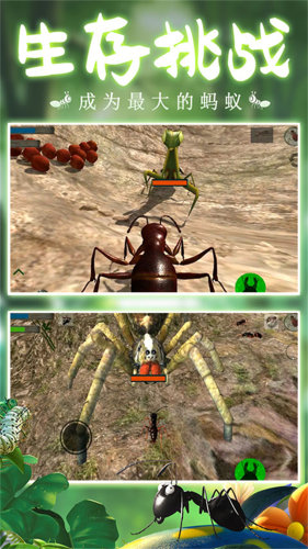 模拟蚂蚁大作战,模拟蚂蚁生存策略游戏。这里微观视角观察蚂蚁生存世界,在这里小小蚂蚁发展成为蚂蚁家族,分工合作,搬运物资,对抗野兽,一起生存发展你的家族。