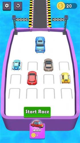 2、通过不断的合并汽车完成升级,驾驶不同的汽车进行竞技闯关,不断收集赛道上各种金币和道具!