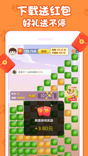 玩消除领红包啦,这是一款简单又休闲的赚钱小游戏,赚多少提多少,即可下载吧!