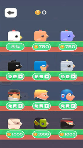 2、游戏画面上会看到各种各样的小鸟皮肤,这些皮肤也都是免费解锁使用的。