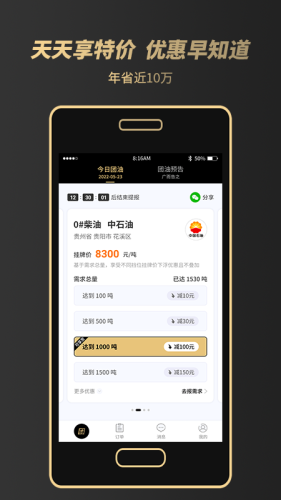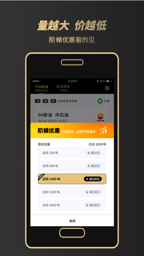 基于团油总量规模,享受挂牌价阶梯优惠下浮,量越大价越低。