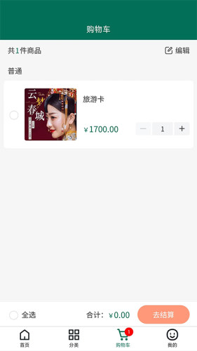 【购物车】购物车分为普通去的商品、助农专区商品、优惠专区商品。
