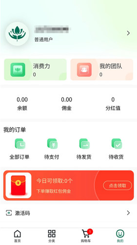 【我的】可在我的专区查看专区的消费金额、我的团队。查看订单、收货地址等功能。