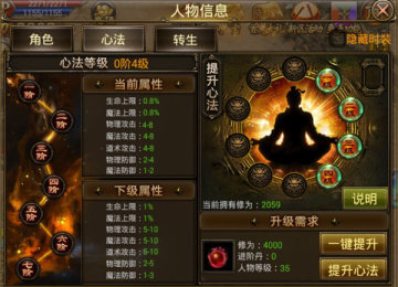 心法激活方式:角色到达31级后使用对应的修为值可以激活第一级“心法”