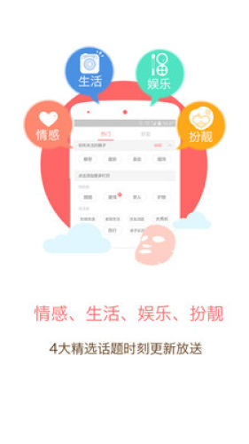 女生们扎堆讨论,一起聊东聊西,从恋爱困惑到情敌危机,从暧昧关系到跟男票啪啪啪,从八卦吐槽到心情分享,从美妆护肤到服装搭配,想说就说,最不好意思的话都有瓷肌懂你。
