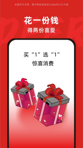 1、买“1”得“2”:“买”1件需要的商品,“选”1件喜欢的商品,仅需一件商品的价钱,即可解锁双倍快乐。