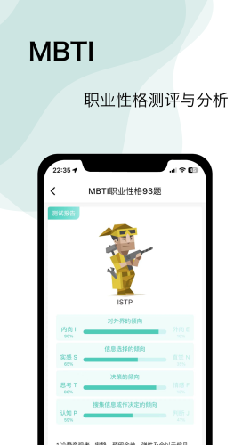 MBTI职业性格测试,菲尔人格测试,沟通能力测评,事业心测评,DISC个性测验,等多种个性性格测试,并且提供了详细的性格解析报告