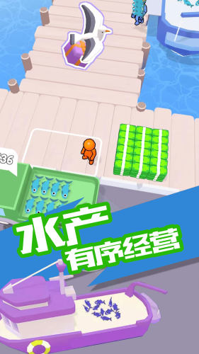你的任务是经营一个港口,销售海鲜产品,赚取财富,并逐步扩大自己的业务范围。你可以利用赚取的财富升级设备,提高运营效率,同时也可以雇佣员工来帮助你维护店铺的运营。