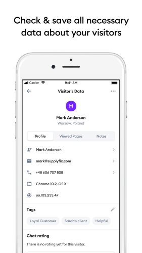 Tidio实时聊天应用程序可让您立即与客户联系。易于使用的实时聊天和聊天机器人,可提高客户满意度,增加销售量,产生潜在客户等!