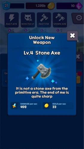 2.终极斧头点击器游戏中你可以随时随地来一场不经意的点击挑战,为你碎片化的时间带来快乐;