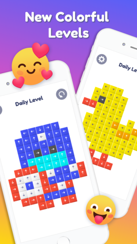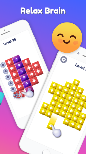 Unpuzzle: Tap Away益智游戏,这游戏的玩法很简单,刚开始是一个nxm的立方体,每一个立方体都是由无数个小方块堆砌而成的,小方块的每一面都有一个箭头,点击方块,只要箭头面没有其他方块的话,那么这个方块就会朝着箭头方向运动消除,知道最后没有方块,你就闯关成功了。
