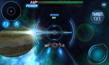 触摸并拖动太空战机,避开敌人的炸弹。点击按钮发射导弹。游戏还可以升级技能装备,并在特定的空间任务使用相应的技能。