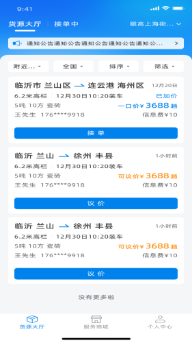 满途货运是一款专门针对货运物流驾驶员的接单软件。不需要在车里等着电话,也不需要去现场问询,直接用满途app就能轻松地拿到订单,提高了周转率,增加了收入。驾驶员可以在任何时候都可以看到货物的状况及收费情况,确保了交易的公平与透明。