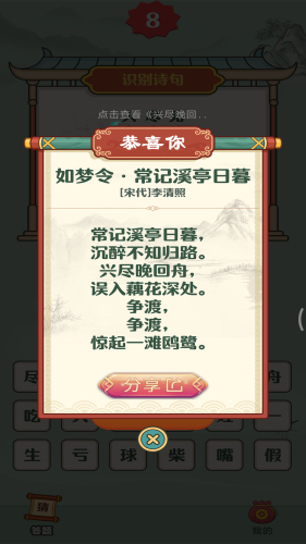 2.该应用收集了1000多首中国古诗题材,题型多样有趣。