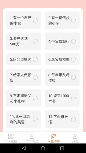 1、天天送福是一款具有每日转发、年度鱼和生活清单功能的软件。