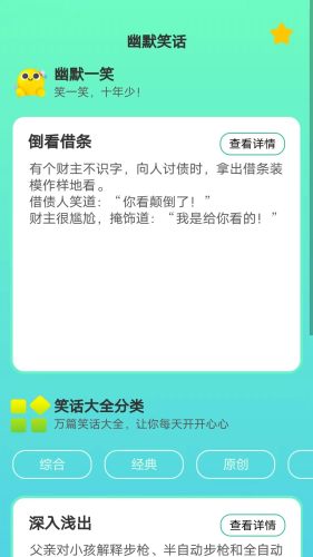 欢喜刷刷乐是一款看笑话、学百科知识、玩脑筋急转弯锻炼大脑的在线娱乐软件。用户在软件轻松愉快的氛围中,可以不断丰富自己的知识库,充实度过每一天。感兴趣的朋友欢迎在本站下载该软件哦!