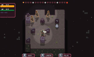 从一个方格跳到另一个方格,如果你有剑,就对周围的敌人造成眩晕效果,如果你没有剑,就只能推他们。