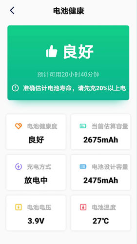 2、提供个性化的节电模式延长电池使用时间,了解手机健康状态、电池信息、修复电池状态