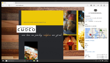 如同猫和视频的结合,有些内容组合在一起会更好。 只有 Microsoft Edge 向你提供私人助理 Cortana,在地址栏上即可找到。 她可帮助你更快且更轻松地执行操作,例如帮助你预订餐厅并即时提供最佳用餐地点的路线。