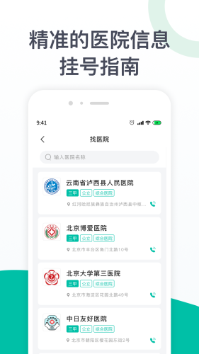 1、实时查询医生出诊情况和号源动态,进行预约挂号并支付,用户自由掌控看病时间。