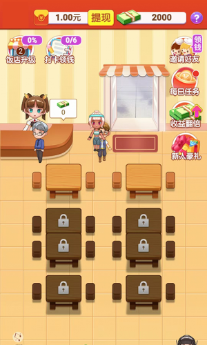 争取赚到更多的钱,升级自己的餐厅等级,每升一级都会有红包可以领取;