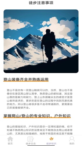2、徒步知识:分享专业徒步知识和经验,为您的徒步之旅保驾护航;