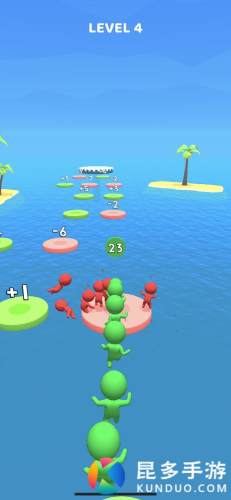 控制你的小火柴人在还海面上从一个平台跳到另一个平台,在平台上具有一些加数和减数,通过收集加数来增加你的火柴人队伍,火柴人越多,对你在终点获得的奖励就越有利。小心,这并不简单!不要掉入海中并到达安全的地方。