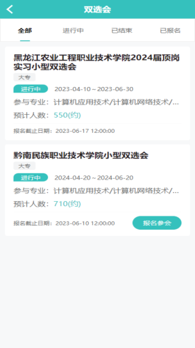 对口实习是一款非常好用的大学生找实习的软件。软件上有着非常多的招聘信息,用户们可以来选择投递。这里还有很多的双选会可以参与,各行各业的招聘都有,有需要的朋友们快来下载体验吧!