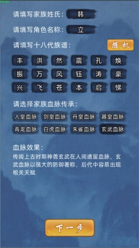 4、游戏中还有一个血脉的设定,我们创建家族时可以选择一个血脉传承,我们家族后人中将有机会出现这个血脉。