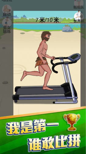 玩家需要点击跑步获得金币,顶部有对应的跑步米数,达到以后就能获得相应的金币。