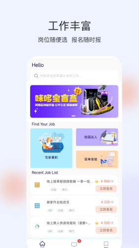 3、用户可以根据自己的条件,选择最合适的兼职工作,为用户提供更好、更舒适的兼职体验。