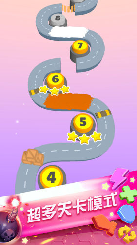 3、关卡挑战:游戏设有多个关卡,每个关卡都有不同的轨道布局和难度。玩家需要通过灵活的操作和反应能力,在规定时间内完成任务,收集奖励和道具,并尽可能获得高分。