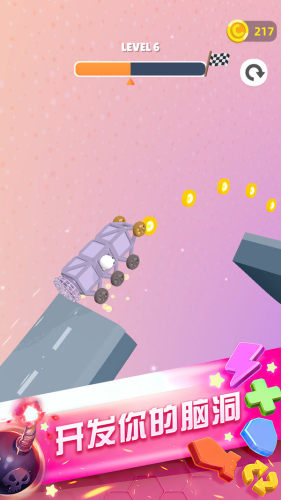 2、道具:游戏中有各种各样的道具如加速器、金币、道路修复等,可以帮助玩家更好地完成关卡。