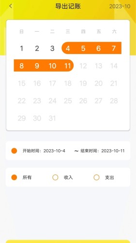 可以按选择日期时间筛选的(或者将所有)记账数据导出到一个表格内。
